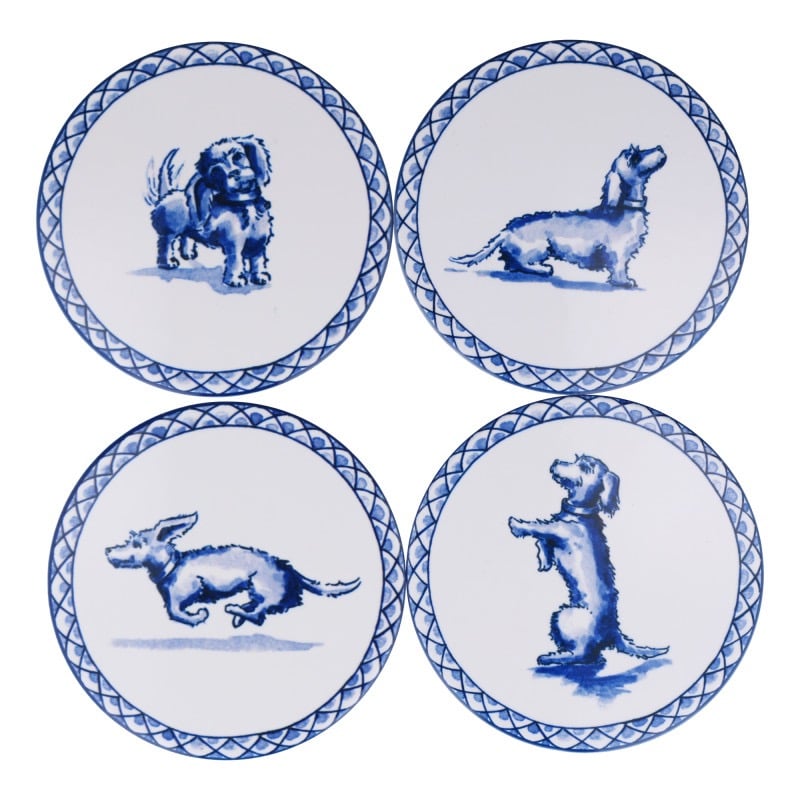 Breng een vleugje charmante, klassieke stijl in je interieur met de prachtige Set van 4 Onderzetters – Teckel van Heinen Delfts Blauw.