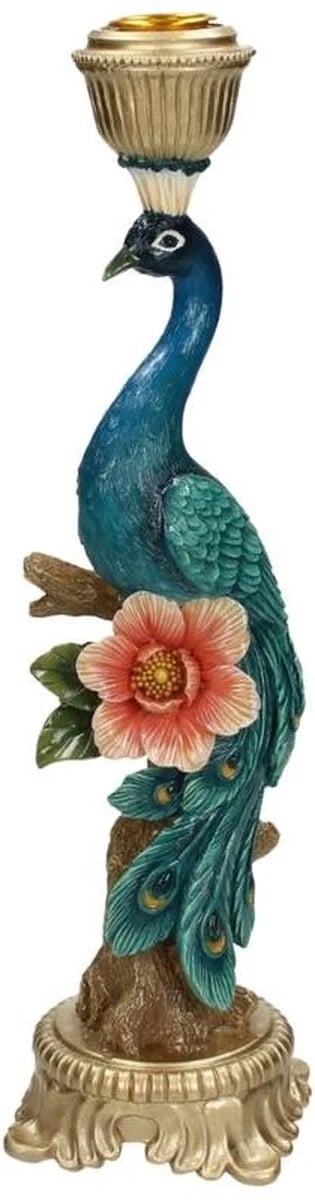 Deze te gekke kandelaar met een pauw en een bloem is lekker kleurrijk en vrolijk. Lekker opvallend en trendy! Combineer hem met een leuke gekleurde kaars.