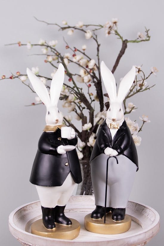Mooie decoratieve set van 2 zwart met grijze beelden van konijnen, in een landelijke stijl met een klassieke uitstraling, van het merk Clayre & Eef.