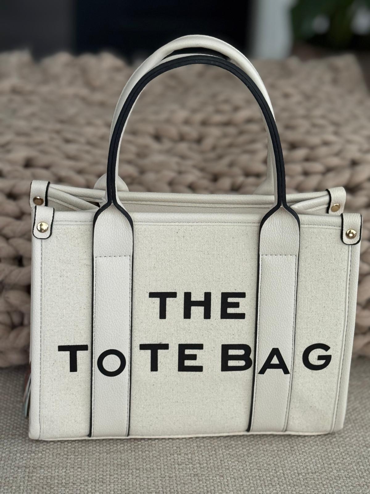 Damestas The Tote Bag wit met zwarte letters 26 x 20 cm